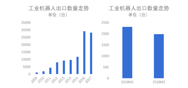 中美“貿易戰”的影響,工業(ye) 機器人屬於(yu) 我國重點發展的高端裝備之一,但筆者繼續看好我國工業(ye) 機器人對外出口的觀點不變,隨著國內(nei) 產(chan) 能的逐步增加,未來多年內(nei) ,我國對外出口工業(ye) 機器人的數量將逐漸增加。